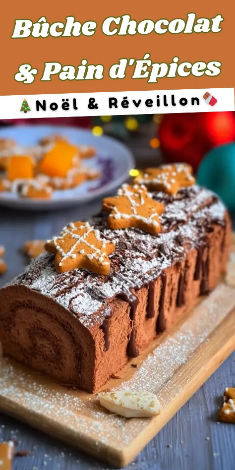 Régalez-vous avec cette délicieuse bûche au chocolat et pain d’épices, parfaite pour les fêtes !