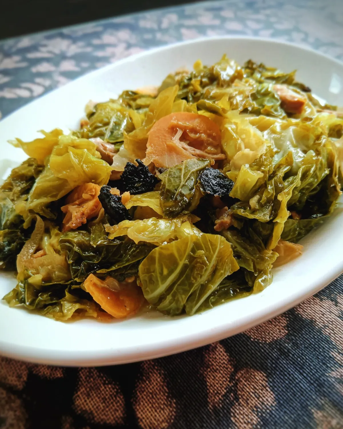 Pour apporter de la variété, vous pouvez servir le chou vert braisé avec des graines de sésame grillées sur le dessus. Vous pouvez également le garnir de noix ou de lardons croustillants pour une touche de saveur supplémentaire.