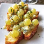 Croutons de Roquefort avec des raisins verts confits