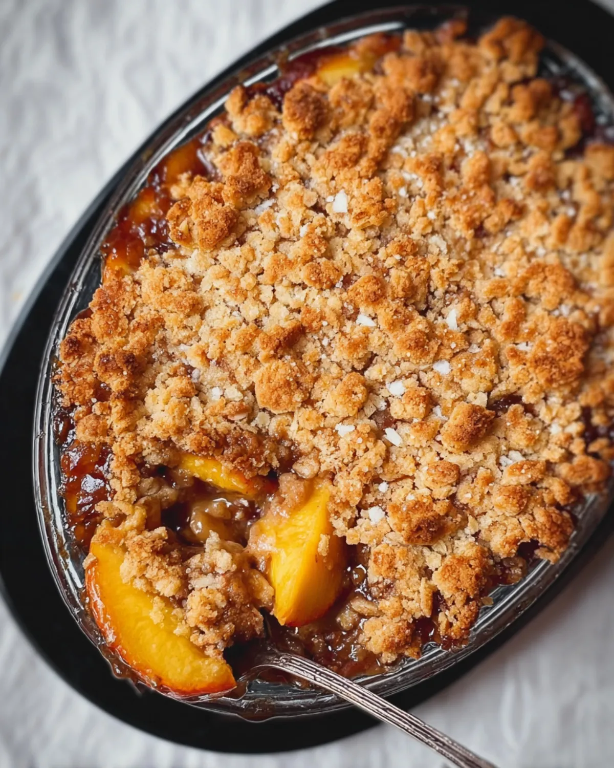 Un dessert savoureux et léger, alliant des pêches juteuses à une croûte croustillante, parfait pour tous les amateurs de sucré.