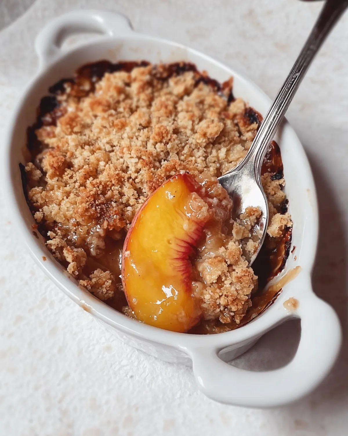 Pour gagner du temps, vous pouvez préparer les pêches la veille et conserver le mélange à crumble séparément. Le jour même, il suffit d’assembler le tout et de le cuire. Cela vous permet d’avoir un dessert frais, même lorsque vous êtes pressé !