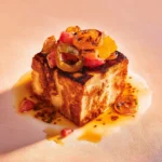 COMMENT SERVIR Cubes de pain perdu, sauce aux pommes et au brandy