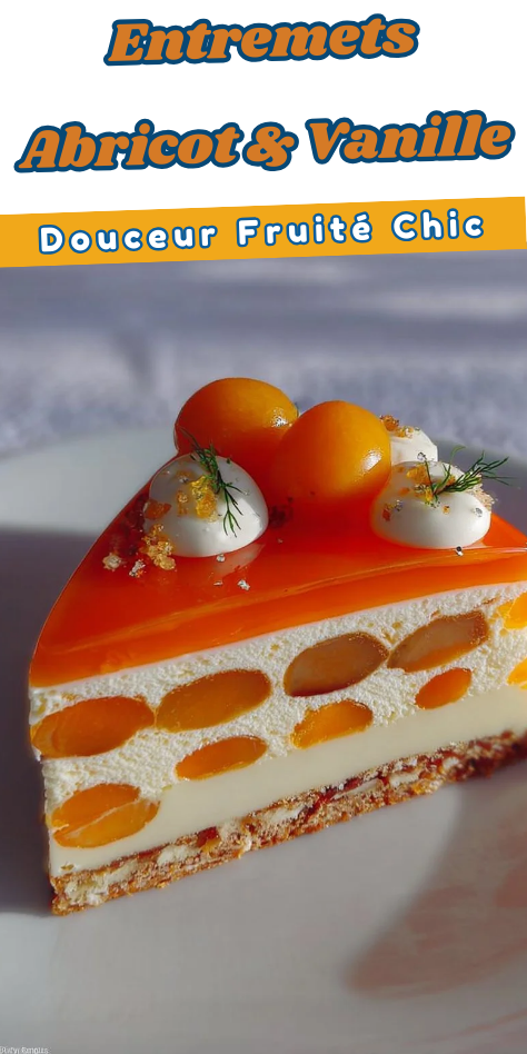 L’entremets est un dessert classique, souvent apprécié pour sa légèreté et sa finesse. En France, il se sert généralement en fin de repas. La combinaison d’abricots et de vanille est très populaire, car elle marie l’acidité des fruits avec le parfum doux de la vanille. Ce mariage crée une harmonie gustative qui fait battre le cœur des amateurs de desserts.