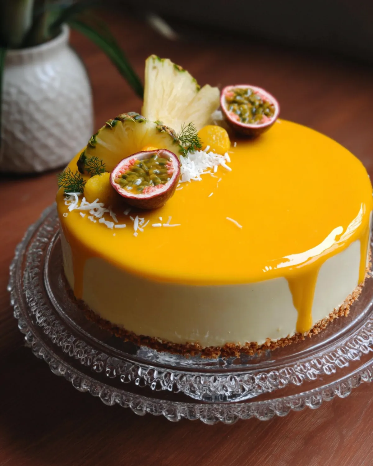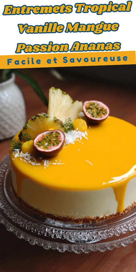 L’entremets a une longue histoire en pâtisserie. Il vient de la France, où les chefs ont commencé à créer des desserts plus élaborés. Les entremets sont souvent des dessert à plusieurs couches, souvent faits avec des fruits, des crèmes ou des mousses. Dans notre cas, les fruits exotiques comme la mangue et le fruit de la passion apportent une touche moderne et vibrante. Ces fruits sont très appréciés dans de nombreuses cuisines, surtout dans les îles et les régions chaudes.