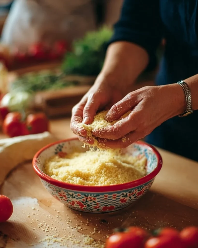 • Version plus saine ("healthy version") : utilisez eau et un filet d’huile d’olive au lieu du beurre, ajoutez beaucoup de légumes, et optez pour de la semoule complète si possible. Cette version réduit les graisses saturées et augmente les fibres. C’est une bonne "lighter option".