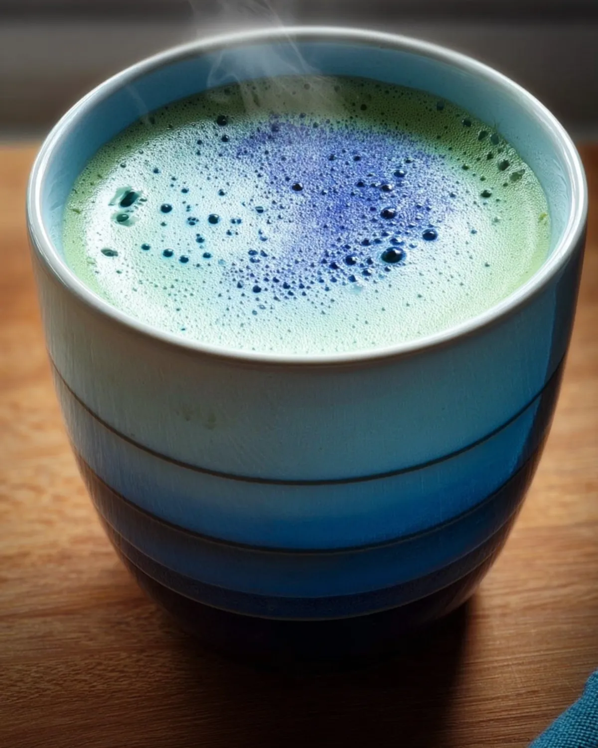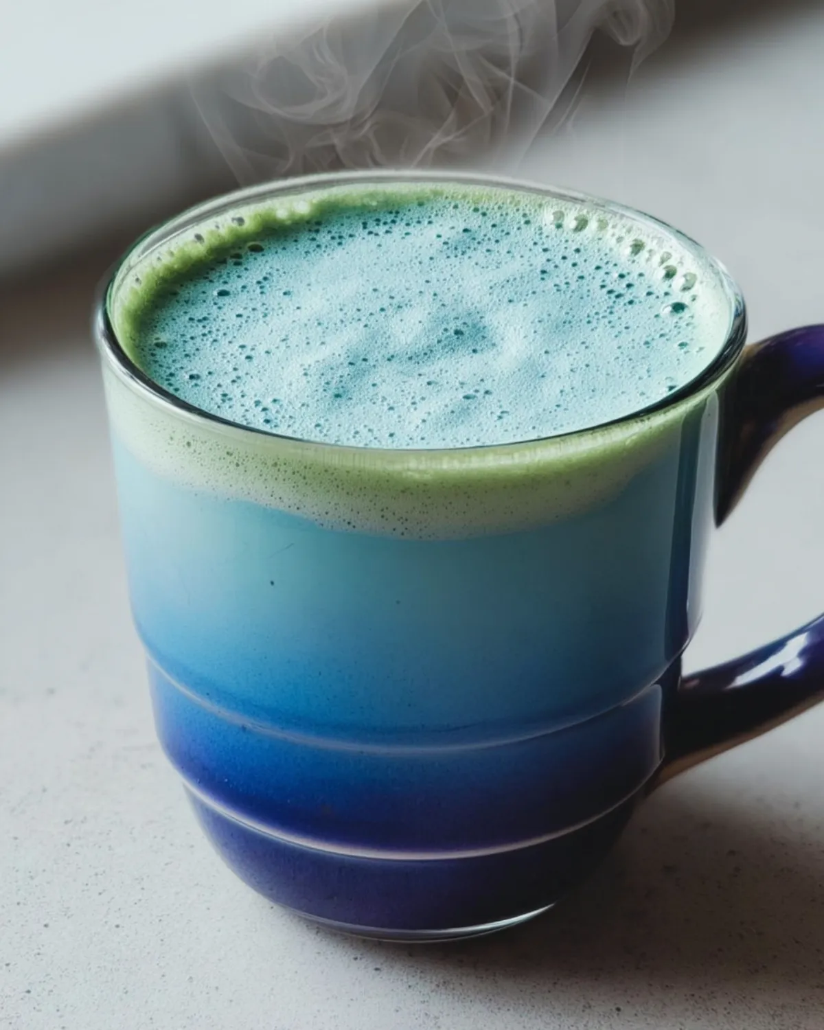 - Verser le mélange de latté bleu matcha dans la tasse et savourez !