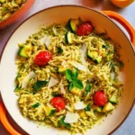 Servez l’orzo à la citronnelle avec pesto et courgettes dans des assiettes creuses. Ajoutez un peu de parmesan râpé sur le dessus pour plus de saveur. Vous pouvez également l’accompagner d’une salade verte pour un repas plus complet.
