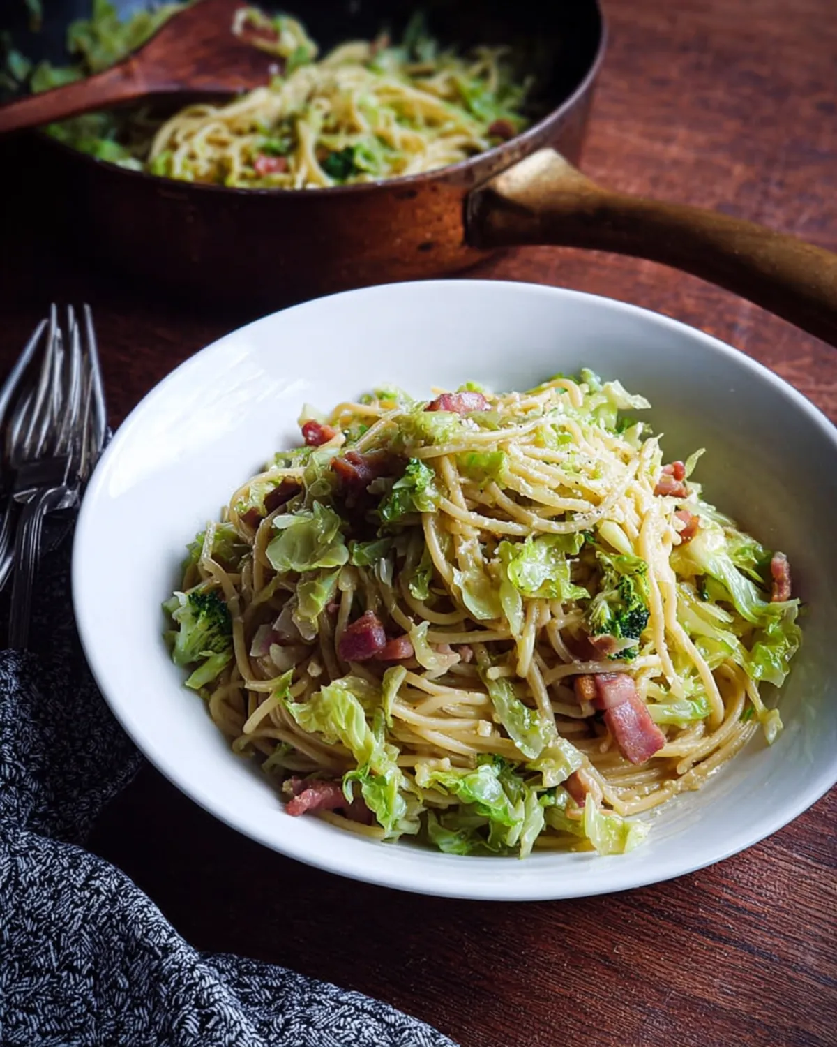 COMMENT SERVIR Pasta with green cabbage and bacon