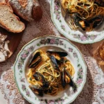 COMMENT SERVIR Pasta with onion fondue and mussels