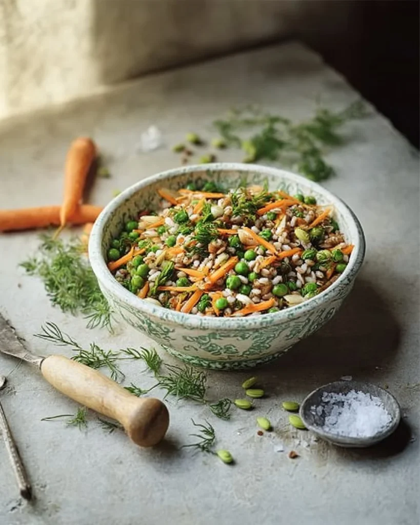 Pour un repas encore plus nutritif, essayez de servir le Pilaf d’Orge avec une salade verte croquante ou des légumes grillés. Cela apportera des vitamines supplémentaires et ajoutera de la couleur à votre assiette, tout en gardant le repas léger et équilibré.
