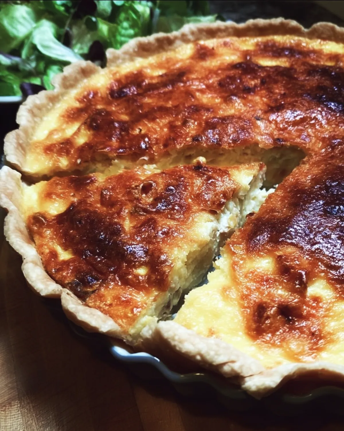 La quiche peut être servie chaude ou froide. Vous pouvez l’accompagner d’une salade verte pour un repas équilibré. Pour une touche finale, ajoutez un peu d’herbes fraîches.