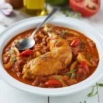 recette poulet basquaise. Tu sais, ce plat qui embaume toute la cuisine et qui réconforte dès la première cuillère. Si tu cherches un plat facile à préparer, généreux, et qui plaît à tout le monde, tu es au bon endroit. Entre les poivrons fondants, les tomates mijotées et le poulet doré, on a ici la petite bombe de saveurs qui sauve les dîners. Et le mieux, c’est qu’on peut la faire d’avance, elle est encore meilleure le lendemain. Allez, je t’embarque avec moi pour un tour dans le Sud Ouest et une casserole qui chante.