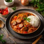 Le rougail saucisse est un plat emblématique de l’île de la Réunion, qui regorge de saveurs et de couleurs. C’est une recette simple à préparer, mais qui offre des goûts riches et réconfortants. Si vous recherchez un plat qui évoque la chaleur des îles et qui peut séduire vos invités, ce rougail saucisse est fait pour vous ! Ce plat est parfait pour un repas en famille ou entre amis, car il est à la fois copieux et savoureux.