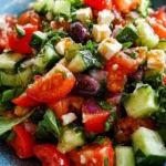 Cette salade méditerranéenne classique prouve que la simplicité des ingrédients frais crée les meilleures saveurs ! Pour compléter vos repas légers, explorez notre bol de poulet méditerranéen plus copieux, ou découvrez notre salade de pommes de terre à la grecque pour varier les textures. Notre caviar d’aubergine rôti accompagnera parfaitement ces salades. Pour plus d’idées de salades fraîches et d’associations méditerranéennes, rejoignez notre communauté sur Pinterest !