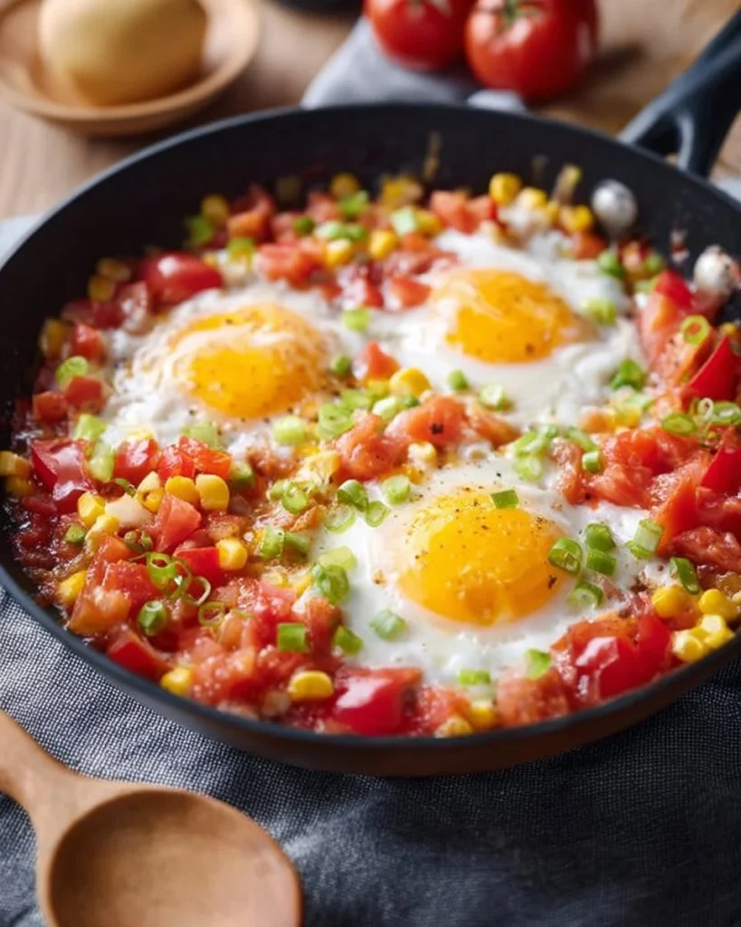 Sauté of tomatoes, peppers, corn, and eggs is an easy and healthy dish that combines vibrant vegetables and protein-packed eggs. This colorful sauté not only has a delightful taste but also boasts numerous health benefits. If you’re looking for a meal that is both nutritious and satisfying, this recipe is a great choice. It is naturally low in calories and can be tailored to fit a variety of dietary needs.