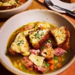 La soupe aux légumes et au jambon avec des croûtons à la raclette est un plat simple, savoureux et réconfortant. C’est une recette facile à réaliser qui convient parfaitement pour les journées fraîches. Les légumes apportent une belle couleur et de la saveur, tandis que le jambon ajoute de la richesse. Les croûtons à la raclette raviront vos papilles grâce à leur texture croustillante et leur goût fromager.