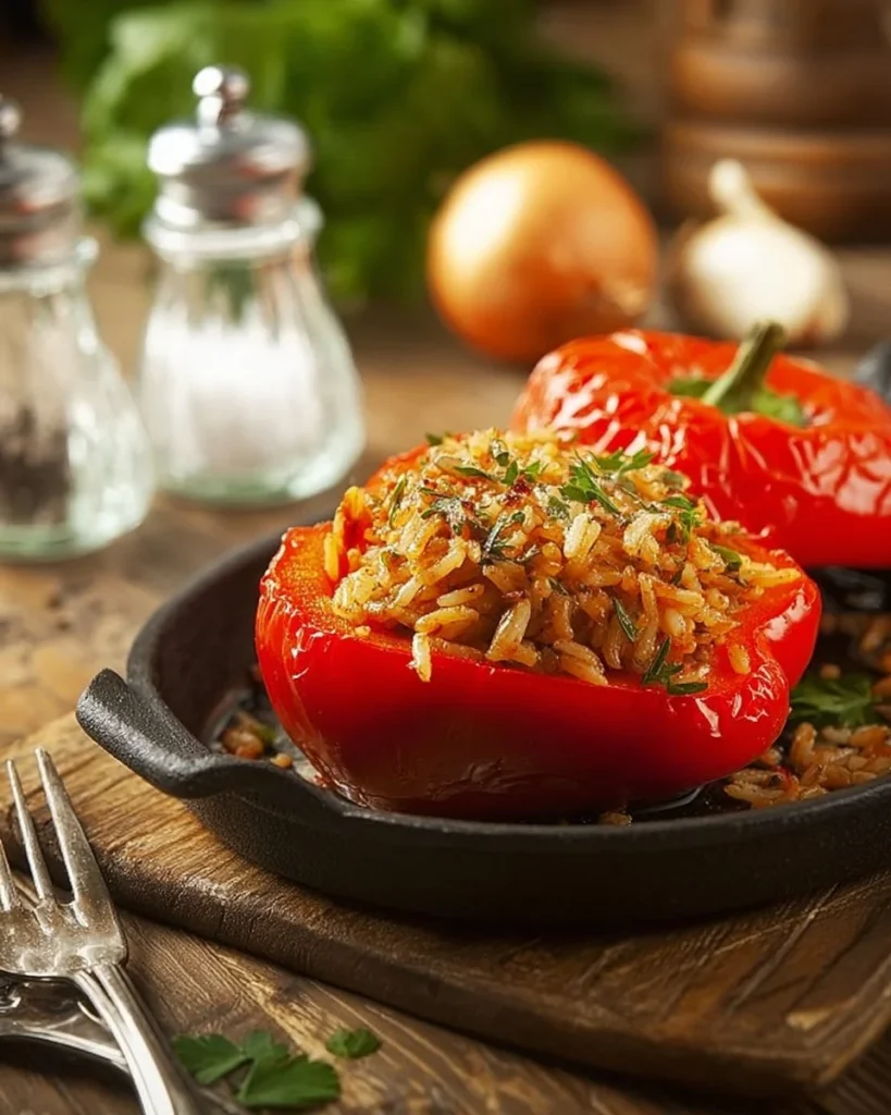 - Version pour air fryer ou four : vous pouvez cuire les poivrons farcis dans une friteuse à air pour une croûte légèrement plus ferme. Pour l’air fryer, cuisez à 180 °C (350 °F) pendant 15–20 minutes selon la taille. Pour le four, suivez la cuisson classique. Cette méthode donne un beau dessus doré et rapide. Pour d’autres idées de repas faciles et familiaux qui se prêtent bien au meal prep, consultez ces idées similaires de poivrons farcis.