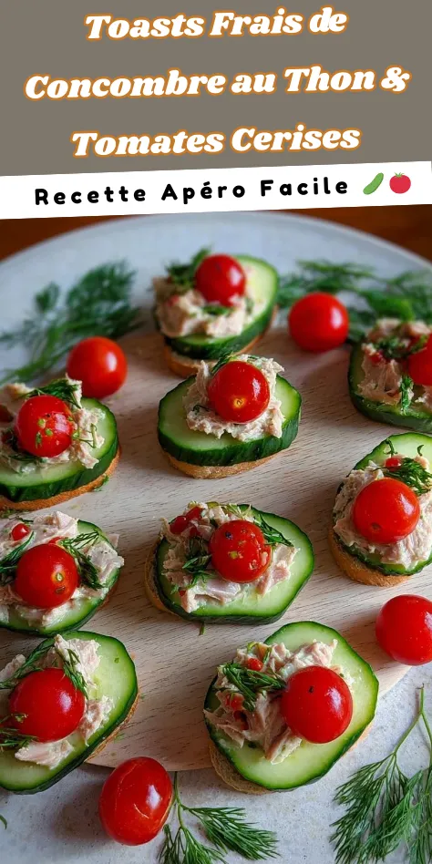 Les toasts de concombre au thon et tomates cerises sont une superbe option pour un apéritif léger et rafraîchissant. Avec des ingrédients simples, cette recette est parfaite pour les soirées entre amis ou les repas en famille. Elle est rapide à préparer et demande peu d’efforts, ce qui la rend idéale pour ceux qui veulent impressionner sans passer des heures en cuisine.