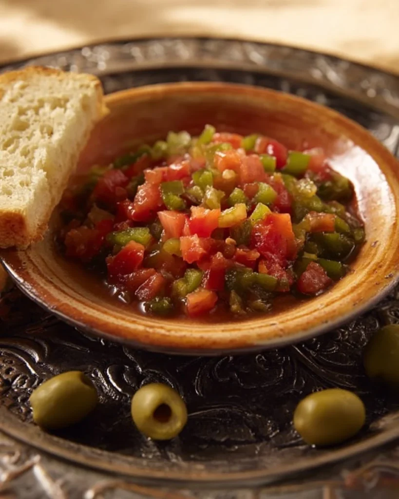 Tunisian Mechouia Salad can be served as a standalone dish or as part of a larger meal. Portion control is key for maintaining a healthy diet; about one to two cups of salad per serving is a great guideline. For a well-rounded meal, pair the salad with a lean protein such as grilled chicken or fish. You can also enjoy it with whole grain pita bread for a heart-healthy side option.